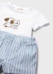 > Embroidered Dog Shirt w/ Blue Striped Short & Hat